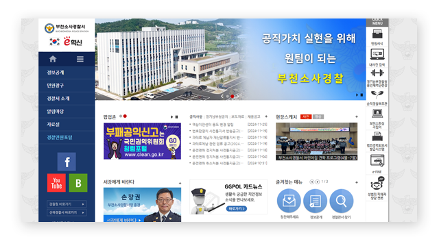 소사경찰서 홈페이지에서는 다양한 경찰 서비스와 관련된 정보를 제공하고 있습니다. 홈페이지를 통해 민원 접수, 범죄 신고, 경찰서 관련 최신 소식 등을 확인하실 수 있습니다. 필요한 서류를 미리 준비하시거나 상담 예약을 하고자 하시는 분들께 유용한 자료를 제공하고 있으니 적극 활용하시기 바랍니다.