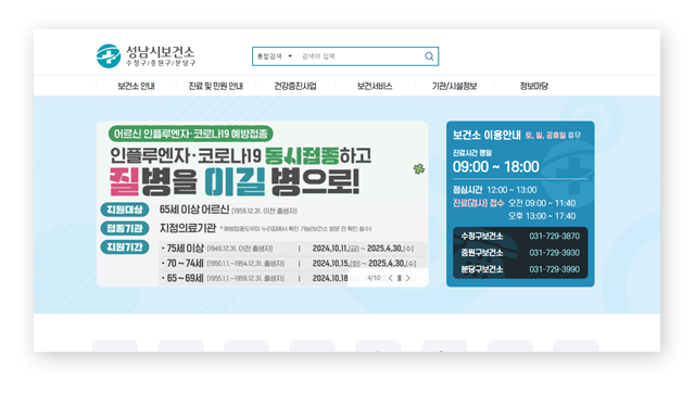 분당구보건소 홈페이지 안내
