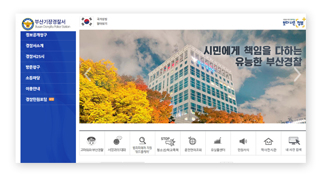 기장경찰서 홈페이지에서는 다양한 경찰 서비스와 관련된 정보를 제공하고 있습니다. 홈페이지를 통해 민원 접수, 범죄 신고, 경찰서 관련 최신 소식 등을 확인하실 수 있습니다. 필요한 서류를 미리 준비하시거나 상담 예약을 하고자 하시는 분들께 유용한 자료를 제공하고 있으니 적극 활용하시기 바랍니다.