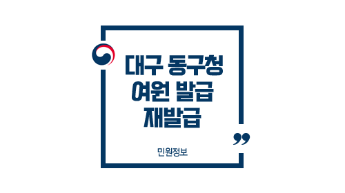 - 대구 동구청은 매주 수요일 오후 6시 ~ 8시 (접수 및 교부 가능) 운영합니다.