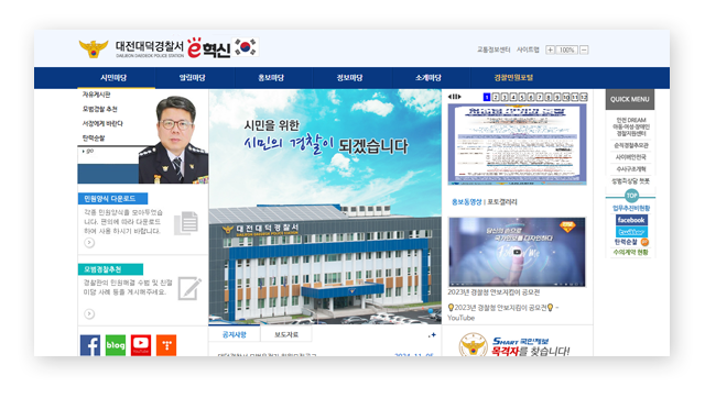 대덕경찰서 홈페이지에서는 다양한 경찰 서비스와 관련된 정보를 제공하고 있습니다. 홈페이지를 통해 민원 접수, 범죄 신고, 경찰서 관련 최신 소식 등을 확인하실 수 있습니다. 필요한 서류를 미리 준비하시거나 상담 예약을 하고자 하시는 분들께 유용한 자료를 제공하고 있으니 적극 활용하시기 바랍니다.