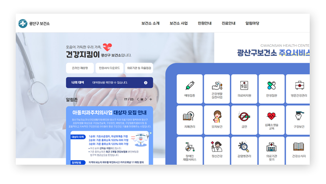광산구보건소의 다양한 정보와 서비스를 온라인에서 확인할 수 있습니다. 예방접종, 건강검진, 각종 보건사업 등에 대한 자세한 내용을 확인하고 신청할 수 있습니다.