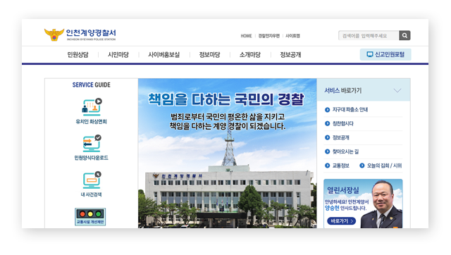 계양경찰서 홈페이지에서는 다양한 경찰 서비스와 관련된 정보를 제공하고 있습니다. 홈페이지를 통해 민원 접수, 범죄 신고, 경찰서 관련 최신 소식 등을 확인하실 수 있습니다. 필요한 서류를 미리 준비하시거나 상담 예약을 하고자 하시는 분들께 유용한 자료를 제공하고 있으니 적극 활용하시기 바랍니다.