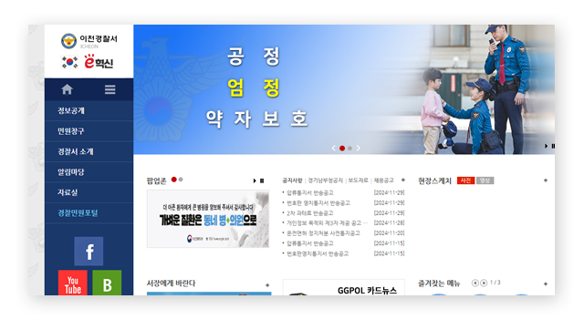 이천경찰서 홈페이지에서는 다양한 경찰 서비스와 관련된 정보를 제공하고 있습니다. 홈페이지를 통해 민원 접수, 범죄 신고, 경찰서 관련 최신 소식 등을 확인하실 수 있습니다. 필요한 서류를 미리 준비하시거나 상담 예약을 하고자 하시는 분들께 유용한 자료를 제공하고 있으니 적극 활용하시기 바랍니다.