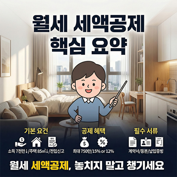 월세 세액공제는 아무나 받을 수 있는 제도는 아닙니다. 아래 요건을 모두 충족해야 적용 대상이 됩니다.