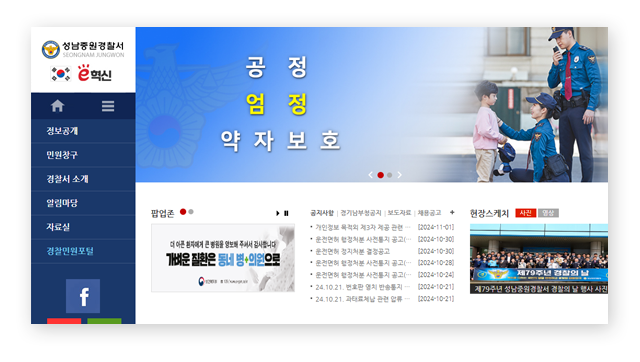성남중원경찰서 홈페이지에서는 다양한 경찰 서비스와 관련된 정보를 제공하고 있습니다. 홈페이지를 통해 민원 접수, 범죄 신고, 경찰서 관련 최신 소식 등을 확인하실 수 있습니다. 필요한 서류를 미리 준비하시거나 상담 예약을 하고자 하시는 분들께 유용한 자료를 제공하고 있으니 적극 활용하시기 바랍니다.