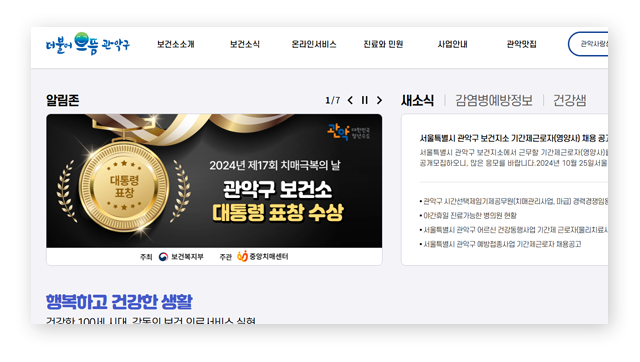 관악구보건소의 다양한 정보와 서비스를 온라인에서 확인할 수 있습니다. 예방접종, 건강검진, 각종 보건사업 등에 대한 자세한 내용을 확인하고 신청할 수 있습니다.