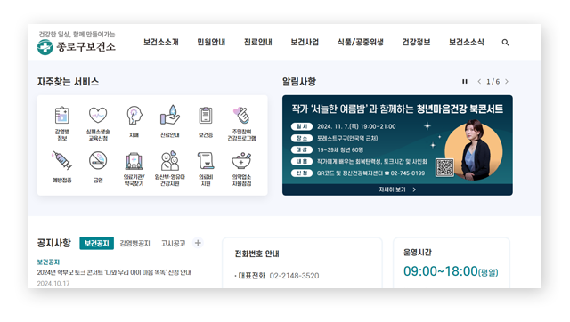 종로구보건소 홈페이지 안내