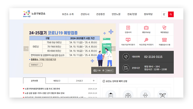 노원구보건소 홈페이지 안내