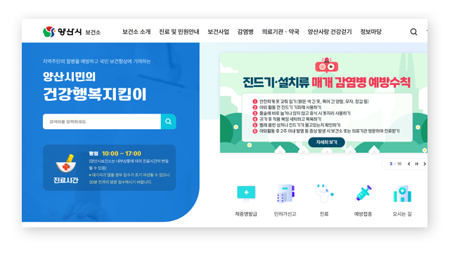 양산시보건소의 다양한 정보와 서비스를 온라인에서 확인할 수 있습니다. 예방접종, 건강검진, 각종 보건사업 등에 대한 자세한 내용을 확인하고 신청할 수 있습니다.