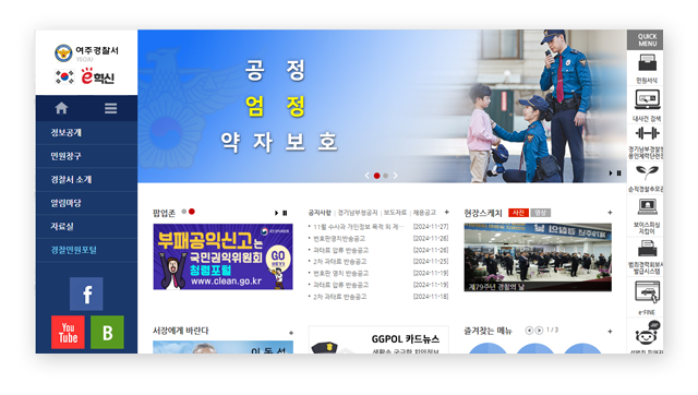 여주경찰서 홈페이지에서는 다양한 경찰 서비스와 관련된 정보를 제공하고 있습니다. 홈페이지를 통해 민원 접수, 범죄 신고, 경찰서 관련 최신 소식 등을 확인하실 수 있습니다. 필요한 서류를 미리 준비하시거나 상담 예약을 하고자 하시는 분들께 유용한 자료를 제공하고 있으니 적극 활용하시기 바랍니다.